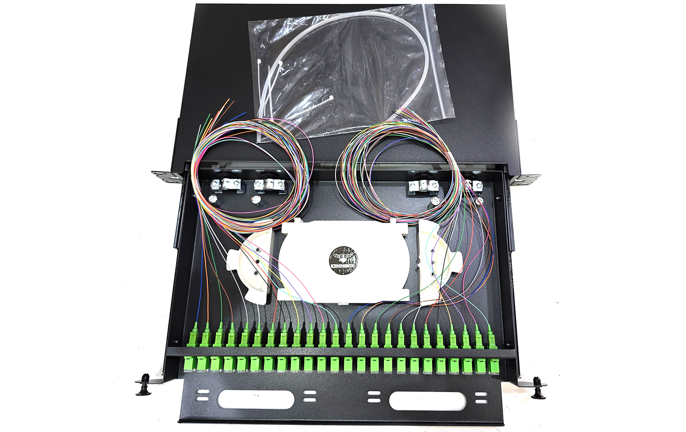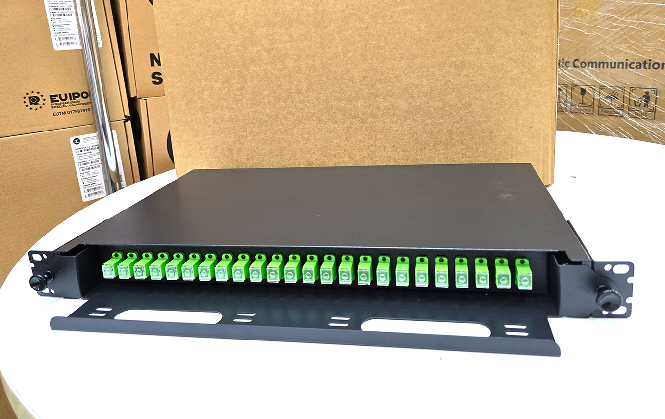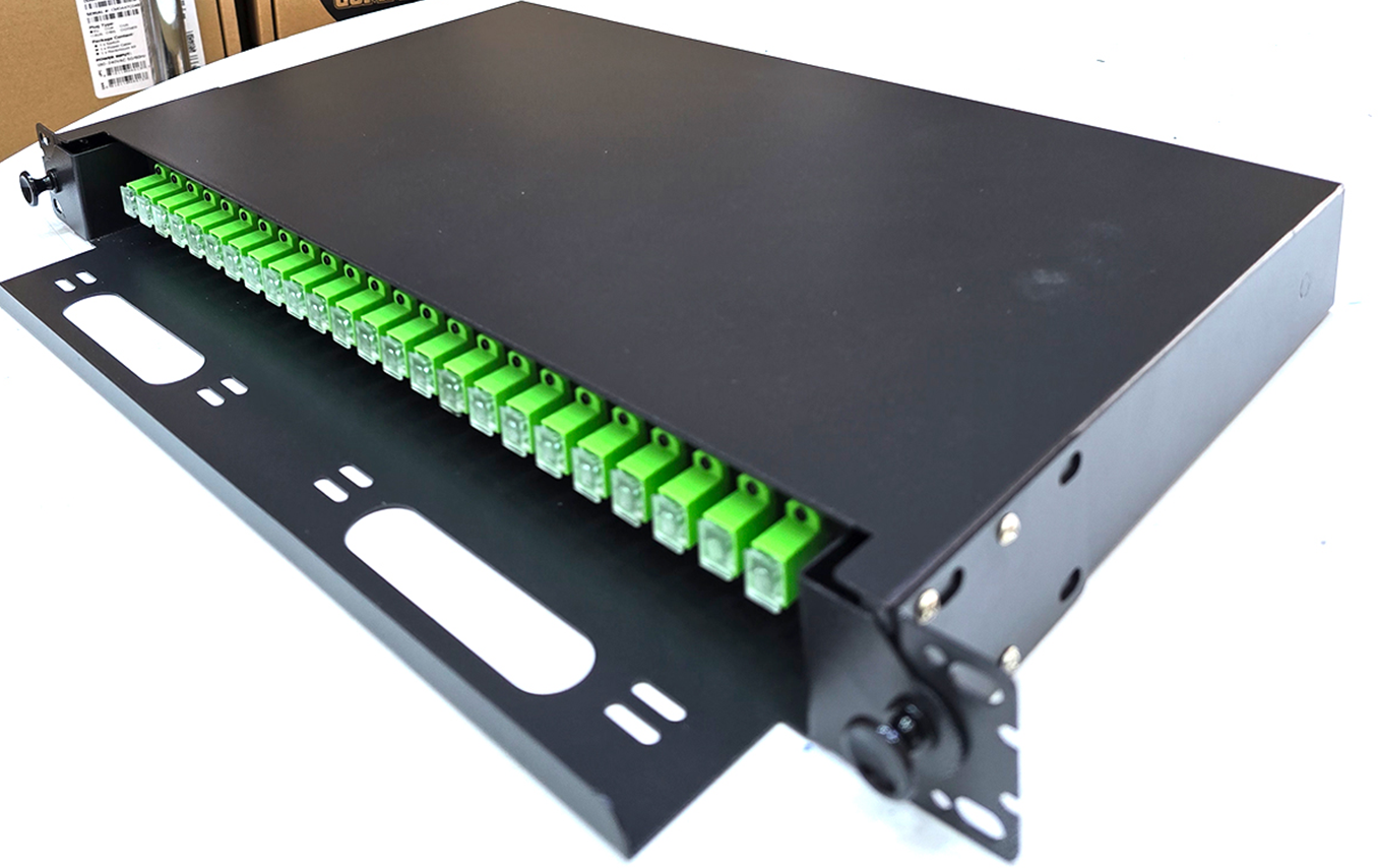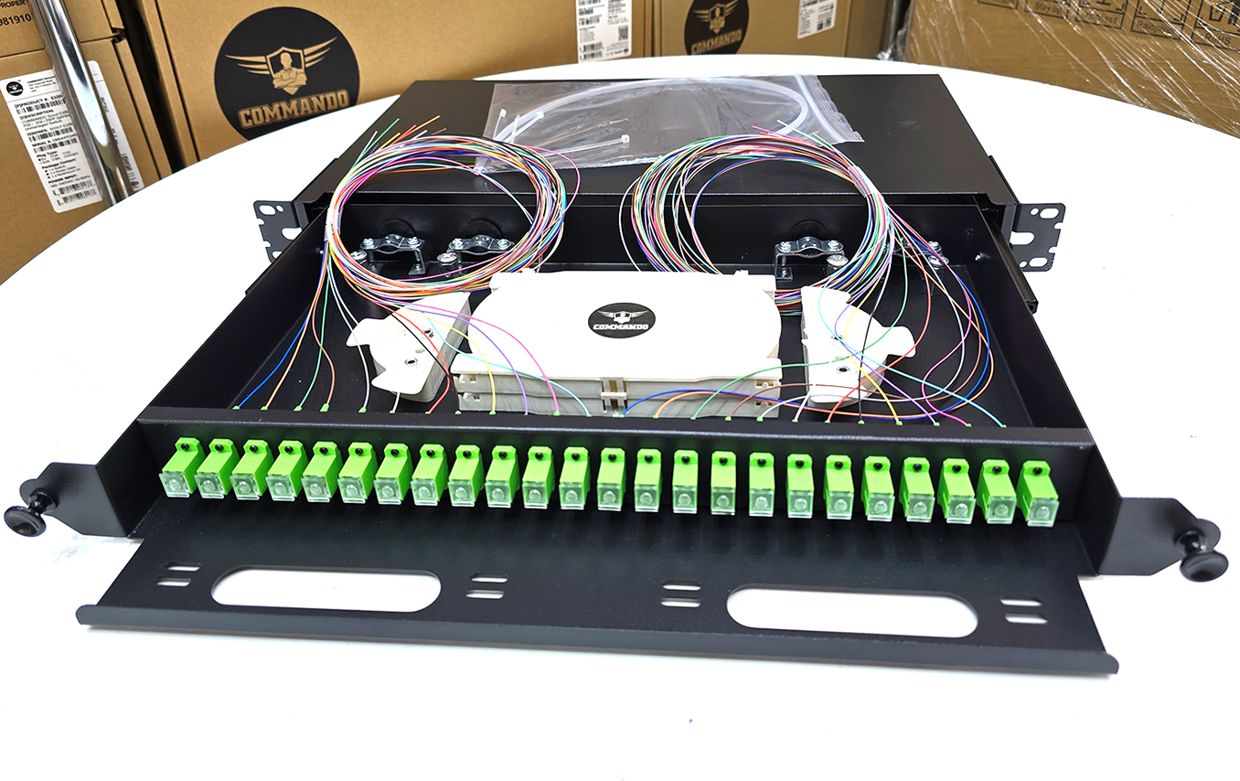 COMMANDO FiberX 24-Port SC/APC Single Mode Fiber Patch Panel, Fully Loaded w/ Rail – 1U