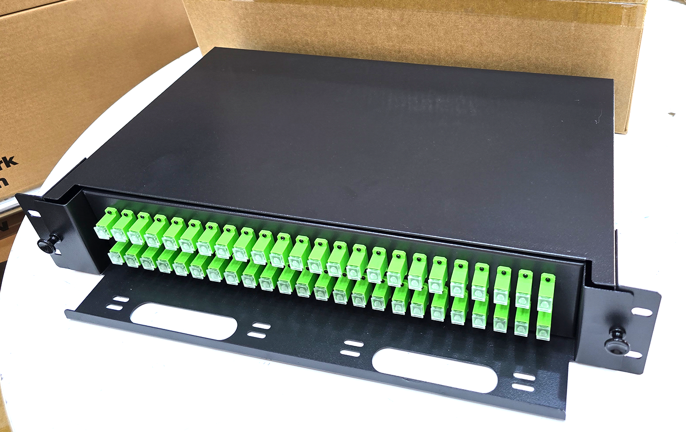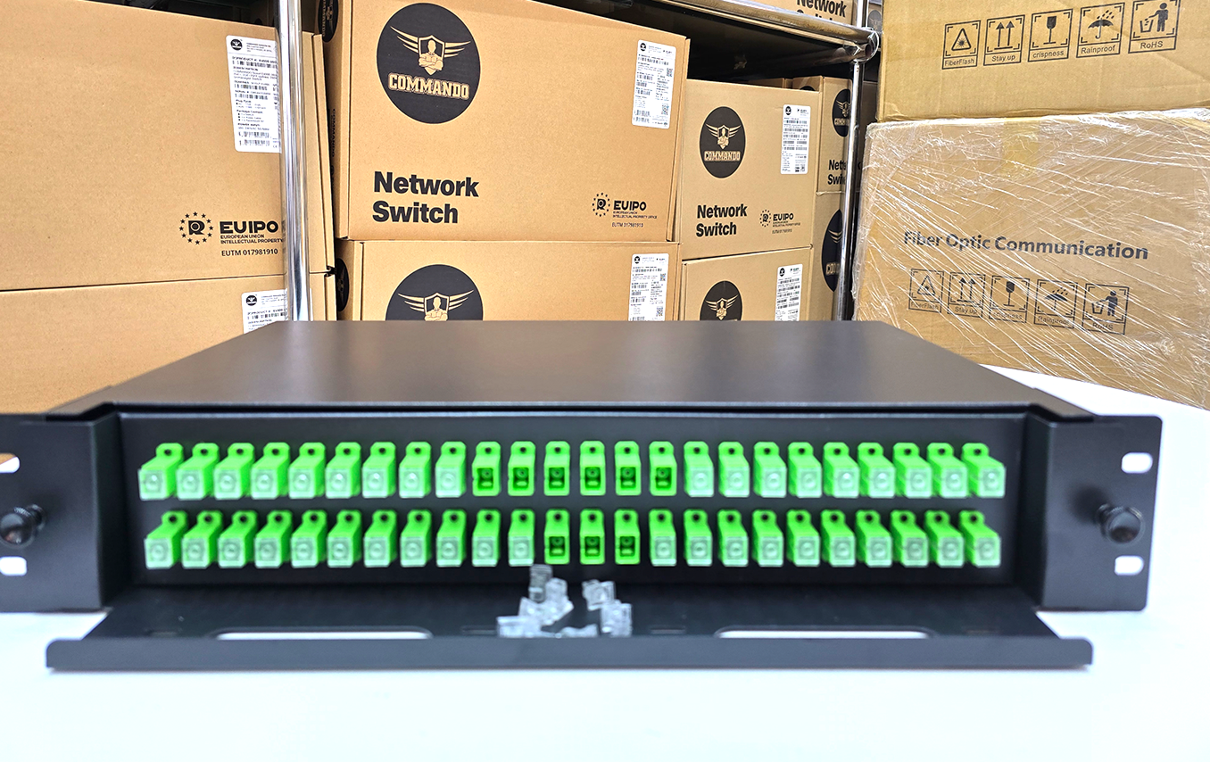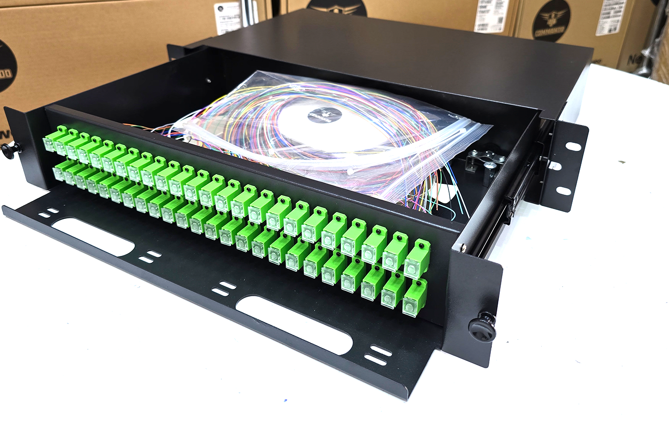 COMMANDO FiberX 48-Port SC/APC Single Mode Fiber Patch Panel, Fully Loaded w/ Rail – 1U