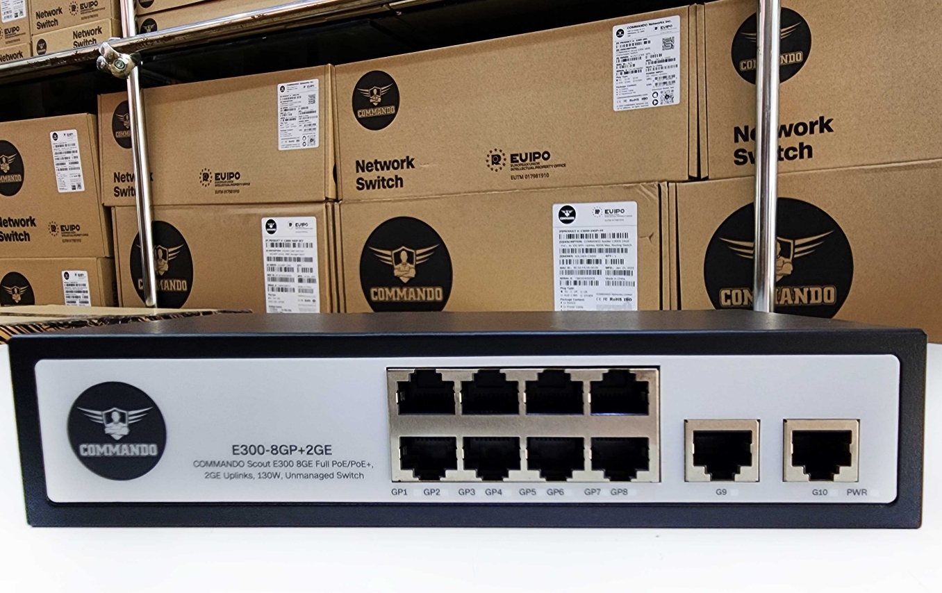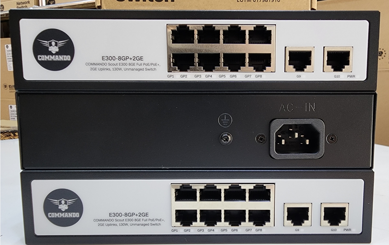 COMMANDO Scout E300 8GE Full PoE/PoE+, 2GE Uplinks, 130W, Unmanaged Switch